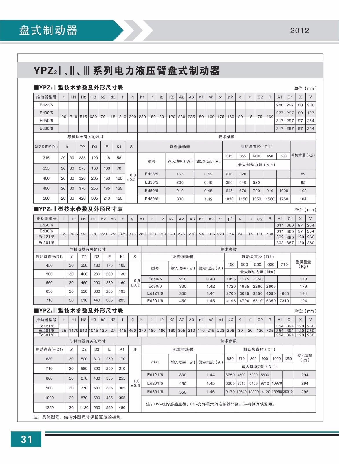 YPZ2 I II III系列電力液壓臂盤(pán)式制動(dòng)器
